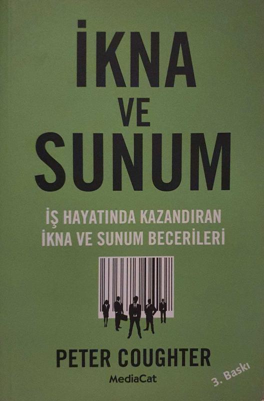İkna ve Sunum - İş Hayatında Kazandıran İkna ve Sunum Becerileri, Peter Coughter tarafından kaleme alınmıştır. Kitap 2015 yılında MediaCat Yayıları tarafından [İstanbul] yayınlanmıştır. Satışta olan kitap, yayınevinin 3. baskısıdır. Bu baskının çevirisi Zeynep Kökkaya tarafından yapılmıştır. 216 sayfadır. İkna ve Sunum - İş Hayatında Kazandıran İkna ve Sunum Becerileri adlı eser Türkçe dilindedir.
