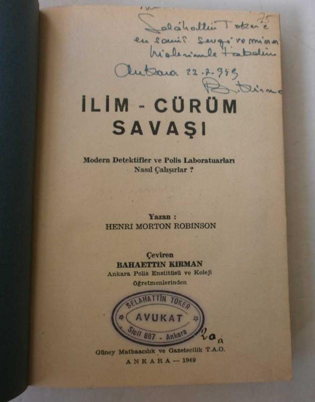 İlim Cürüm Savaşı - Modern Dedektifler ve Polis Laboratuarları Nasıl Çalışırlar?, Henri Morton Robinson tarafından kaleme alınmıştır. Kitap 1949 yılında Güney Matbaacılık ve Gazetecilik tarafından [Ankara] yayınlanmıştır. Bu baskının çevirisi Bahaettin Kirman tarafından yapılmıştır. 292 sayfadır. İlim Cürüm Savaşı - Modern Dedektifler ve Polis Laboratuarları Nasıl Çalışırlar? adlı eser Türkçe dilindedir.