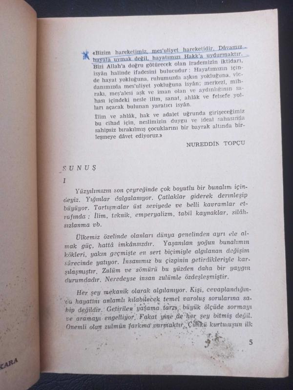 Kitapsız hayat kör,sağır,dilsiz yaşatmaktır.Kitap,zekayı kibarlaştırır.Kitaplar beni ortaya çıkardı.Milletlerin aklı,kitapla gelişir ve büyür.Kimler fazla okuyorsa,az okuyanlara hükmeder.Okumadan geçen bir gün,kaybedilmiş bir gündür.Söz uçar,yazı kalır.Yazı ile saptanmayan her şey,kaybolmuş demektir.Alem unutmuş,kalem (kitap) unutmamış.Bir kitabın içinde birçok ülkeler gezebilirsiniz.En iyi kitapları önceden okuyunuz,çünkü hepsini okuma fırsatını bulamayabilirsiniz.Bizde kitap baş üstünde taşınacak kadar makbuldur.Yazılı kağıdın üzerine basılmaz bile.”Hacı hacıyı Mekke’de,derviş dervişi tekkede bulur,demişler.Alim de alimi bizim çarşıda bulur.”Pirimiz Arslan Kaynardağ’dır,Nizamettin Aktuç’tur,Raif Yelkenci’dir.Gutemberg (1400-1468) matbaayı buldu.