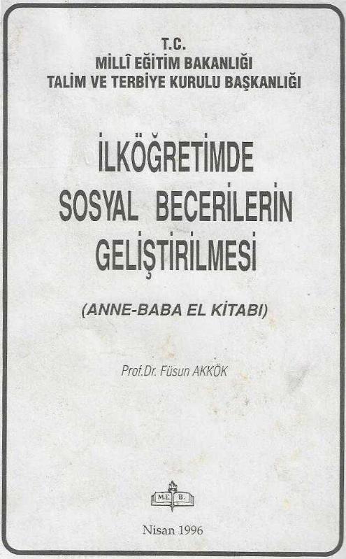 İlköğretimde sosyal becerilerin geliştirilmesi (anne-baba el kitabı), Füsun Akkök tarafından kaleme alınmıştır. Kitap 1996 yılında Milli Eğitim Bakanlığı tarafından [Ankara] yayınlanmıştır. 51 sayfadır. İlköğretimde sosyal becerilerin geliştirilmesi (anne-baba el kitabı) adlı eser Türkçe dilindedir.