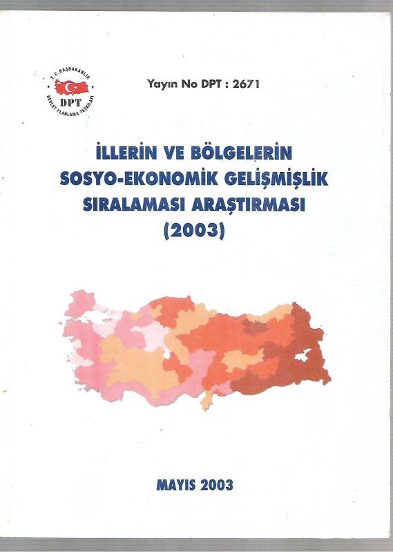 Kitap 2003 yılında Devlet Planlama Teşkilatı tarafından [Ankara] yayınlanmıştır. 250 sayfadır. İllerin ve Bölgelerin Sosyo-Ekonomik Gelişmişlik Sıralaması Araştırması (2003) adlı eser Türkçe dilindedir.