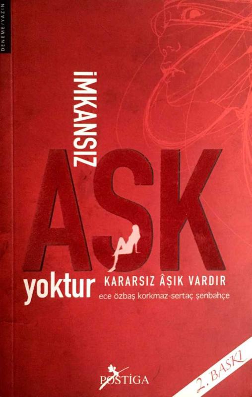 İmkansız Aşk Yoktur Kararsız Aşık Vardır, Ece Özbaş Korkmaz;Sertaç Şenbahçe tarafından kaleme alınmıştır. Kitap 2011 yılında Postiga Yayınları tarafından [İstanbul] 9786055711214 ISBN kodu ile yayınlanmıştır. Satışta olan kitap, yayınevinin 1. baskısıdır. 288 sayfadır. İmkansız Aşk Yoktur Kararsız Aşık Vardır adlı eser Türkçe dilindedir.