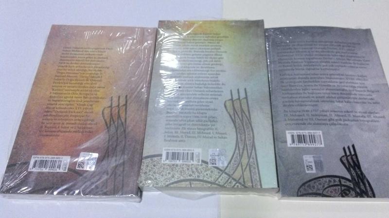 AMBALAJINDA 1. Cilt. Bayezid (II), Yavuz, Kanûnî / Feridun M. Emecen, 168 s., 1 katlı harita -- 2. Cilt. II. Selim'den Sultan İbrâhim'e, 1566-1648 / Feridun M. Emecen, 397 s. -- 3. Cilt. IV. Mehmed'den III. Osman'a (1648-1757) / Abdülkadir Özcan, 260 s.