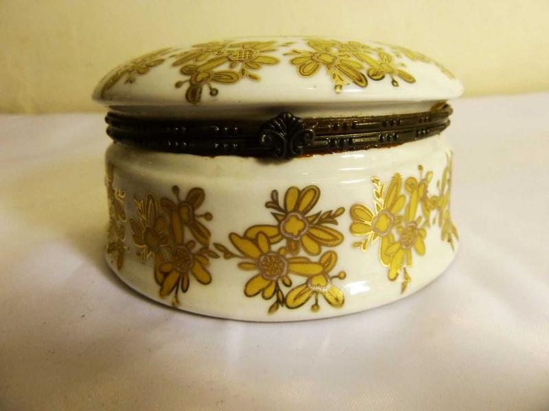 İmzalı, altın vermeyli el boyaması, porselen mücevher kutusu. Çapı 11cm. Y.5,5cm., 3 yıl önce kitantik’te satışa sunulmuştur.