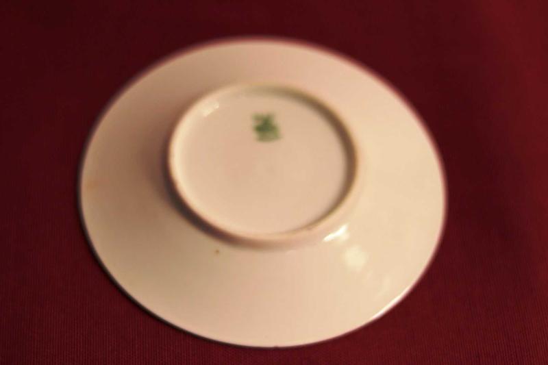 İmzalı ve imalat damgalı, gül motifli, el boyaması Alman çift porselen kahve fincanı. Y:6 cm., 3 yıl önce kitantik’te satışa sunulmuştur.