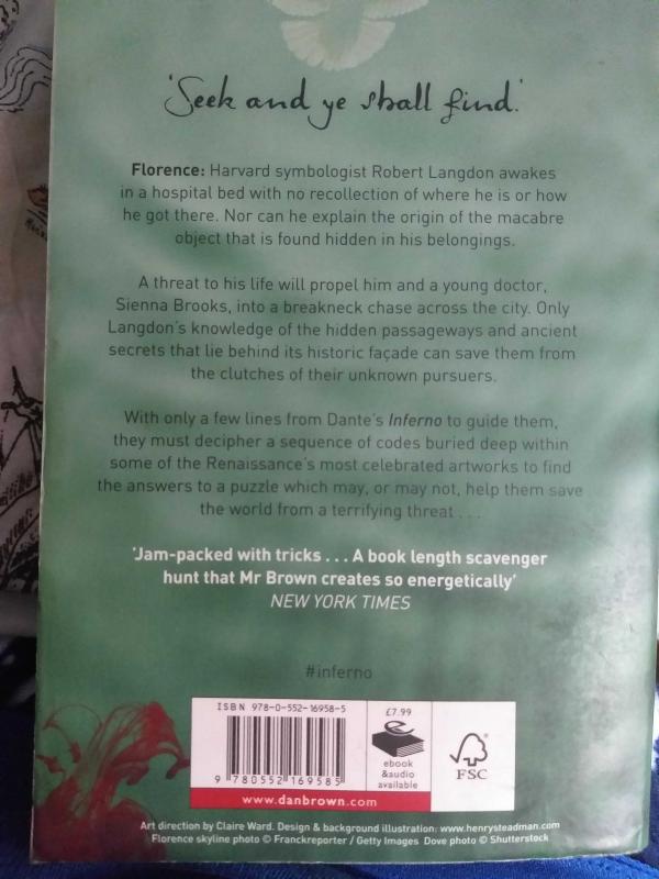 Inferno, Dan brown tarafından kaleme alınmıştır. Kitap 2013 yılında 9780552169585 ISBN kodu ile yayınlanmıştır. Inferno adlı eser İngilizce dilindedir.