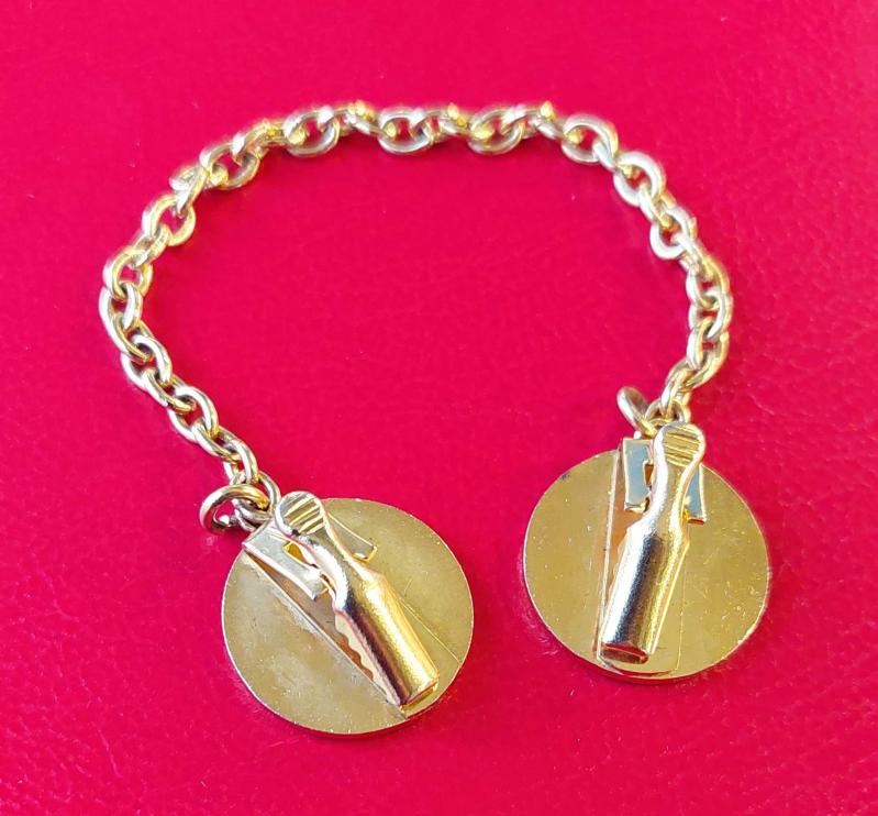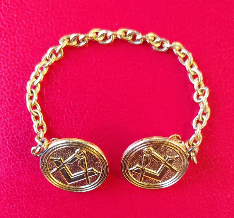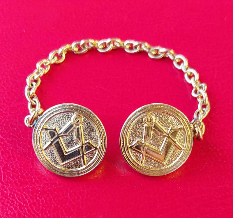 İngiltere, Masonik Loca Rozeti/Broş (Zincirli Çift-Pergel ve Gönye Sembolü) Ceket Yaka Klipsi Vb. Altın Kaplama. İyi Durumda. 1960-80'ler.