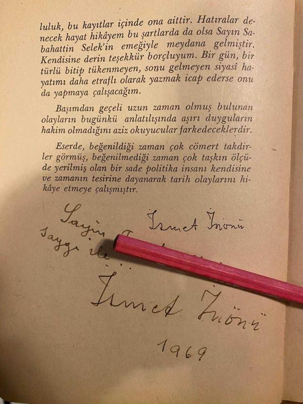 İsmet İnönü tarafından Cemal Gürsel'in yaverlerinden birine imzalı/ithaflı olup aileden alınmıştır.