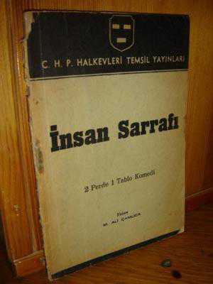 İnsan Sarrafı, M. Ali Çamlıca tarafından kaleme alınmıştır. Kitap 1941 yılında C.H.P. Halkevleri Temsil Yayınları tarafından yayınlanmıştır. İnsan Sarrafı adlı eser Türkçe dilindedir.