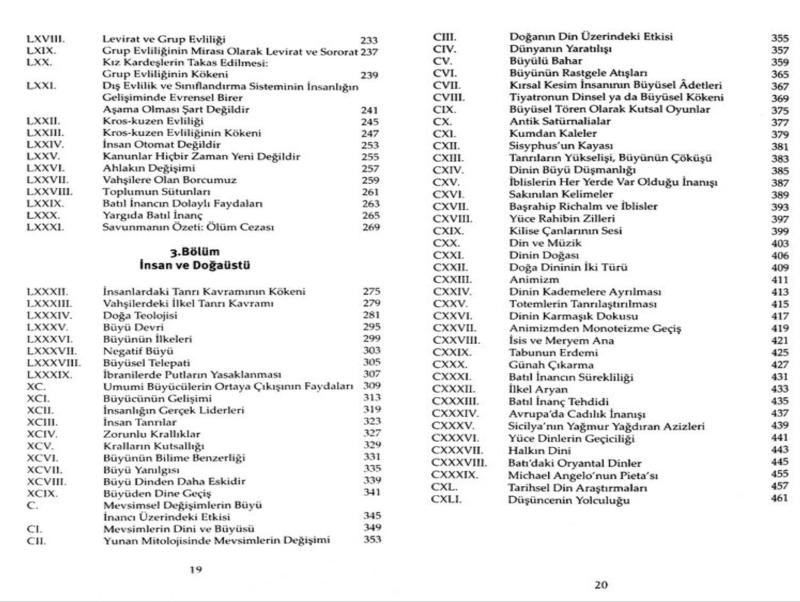 “Geçmişte yapmayı denediğim tek şey, insan evriminin bazı safhalarını araştırmaktı. Ve bu kitapta amaçladığım tek şey, araştırmalarımın sonuçlarını okurun insanlığın vahşilikten medeniyete yükselirken çıktığı uzun yürüyüşe dair fikir verecek bir optik cam biçiminde netleştirmektir. Yürüyüş hâlâ devam ediyor ve şüphesiz ki bizden sonra da duraksamadan devam edecek. Varış noktası, geleceğin sis bulutları ardında gizli ve bilinmiyor. Şayet yürüyüşe çıkanlar yanlarına benim eserlerimden birini alırlarsa, belki bu kitap sırt çantalarından birinde bulunabilir. Neyse ki, ağır verileri çıkararak yükü hafifletmeyi denedim. Fakat, yanılmıyorsam, verdiğim bilgiler uzun vadede teorilerimden daha değerli bulunacak ve daha kıymetli görülecektir. Çünkü teoriler gelip geçiyor, fakat veriler kalıcı ve ebedi oluyor, tabii bu sürekli değişen dünyada bir şeyin bakiliğinden söz etmek mümkünse. Öyle tahmin ediyorum ki yazılarım sonraki nesillerin raflarında kendine yer bulabilirse, bunun sebebi antik ve barbar gelenekleri, inançları aydınlatmak için kullandığım teorilerimden daha ziyade tarif ettiği bu gelenek ve inançlar olacaktır. Unutmamalıyız ki kitapların da, insanlar gibi, yazgıları vardır ve büyük çoğunluğu er ya da geç yok olmaya mahkûmdur. Şüphesiz, kendi yazılarım için değerli malzemeler elde ettiğim pek çok kitap da bu kısa ömürlü kitaplar arasında yer alacaktır; gelecek nesiller günümüzde yaşayan bizleri antik dönemdekilerle bir tuttuğu zaman, belki de kitaplarımdan bazıları çoktan tarih olmuş bir vahşilik ve barbarlık belgesi olarak, özgün belgeleri yok olmuş kaynaklar olarak hâlen okunmaya devam edebilir. Öte yandan, bu kitap araştırmacılara daha kapsamlı eserlerimin labirentlerinde rehberlik edecek bir ipucu olarak bir süreliğine faydalı olabilir.”