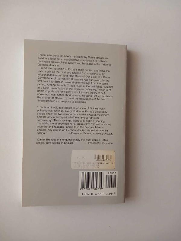 Introductions to the Wissenschaftslehre and Other Writings (1797-1800), Johann Gottlieb Fichte tarafından kaleme alınmıştır. Eser Daniel Breazeale editörlüğünde hazırlanmıştır. Kitap 1994 yılında Hackett Publishing tarafından yayınlanmıştır. 213 sayfadır. Introductions to the Wissenschaftslehre and Other Writings (1797-1800) adlı eser İngilizce dilindedir.