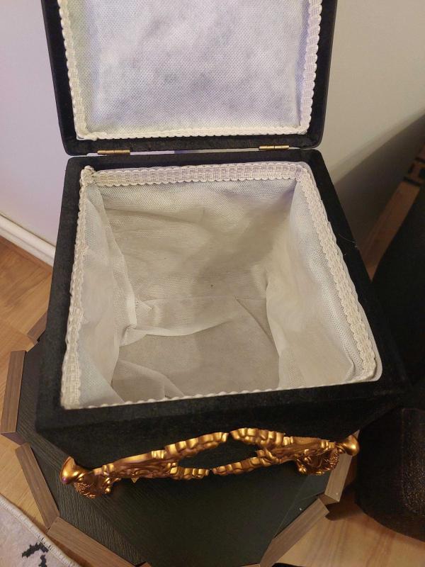 Çok amaçlı kullanabileceğiniz ahşap dışı ipek kadife kumaştan imâl edilmiş olan polyester döküm ayak ve dekorundan oluşan asla leke tutmayan dış yüzeyi ile çok şık dekoratif kutudur.Ürünün yerden yüksekliği 30 Cm Eni 22 Cm'dir.İçi derin ve geniştir.Diğer ilânlarımı İncelemeyi unutmayınız.