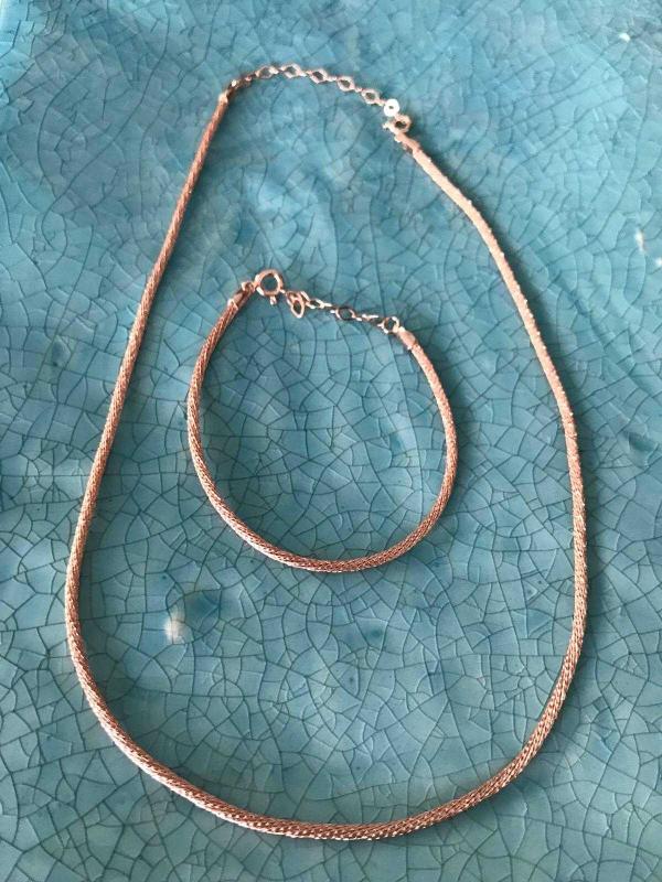İpek Zincir Kolye ve Bileklik. İpek dokuma Rose altın kaplama gümüş Bileklik. Hediye paketli gönderi ücretsiz kargo.