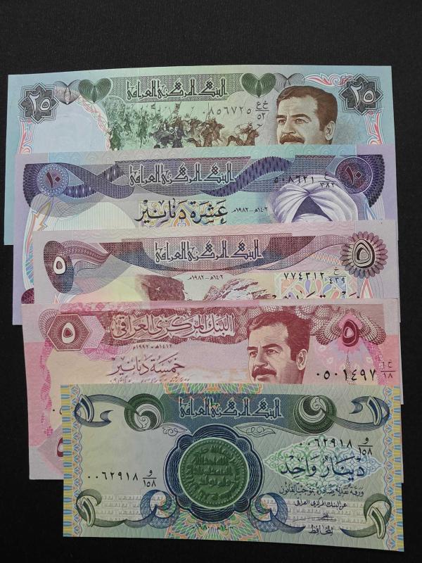 Irak 1-5-10-25 Dinars ,1980/1982 ÇİL, (Toplam 5 ad. Banknot), bir ay önce satışa sunulmuştur.