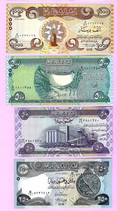 Irak, 50-250-500-1.000 Dinars, 2002-2018, ÇİL, p90; p97; p98; p104, (Toplam 4 adet banknot) (TK 17 382) ÇİL, bir ay önce satışa sunulmuştur.