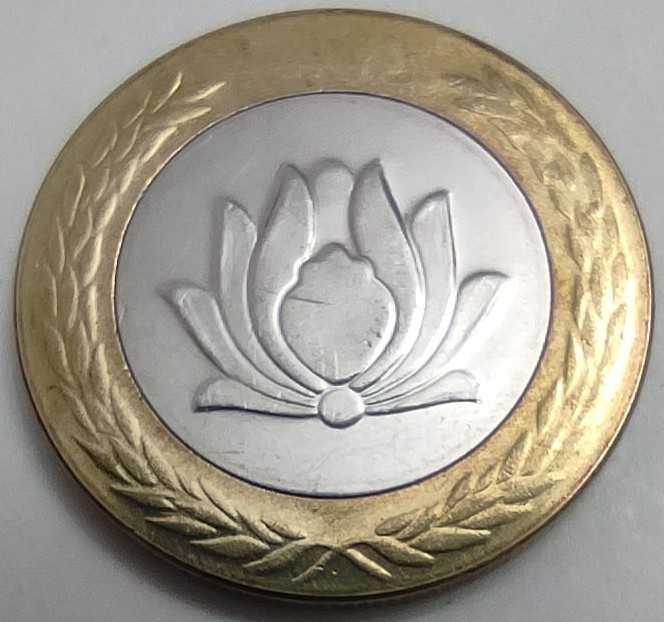 İran İslam Cumhuriyeti’nin modern nümismatik tarihine ışık tutan bu 250 Riyal, bimetalik yapısıyla dikkat çeken estetik bir örnektir. Paranın ön yüzünde, defne çelenkleri arasında Farsça "Nastaliq" hat sanatı kullanılarak yazılmış nominal değer ve darp yılı yer almaktadır. Özellikle Farsça 5 rakamının alışılagelmişin dışındaki zarif formu, paraya sanatsal bir derinlik katmaktadır. Koleksiyonunuza Orta Doğu’nun kaligrafi kültürünü taşıyacak bu parça, hem kondisyonu hem de metal uyumuyla ön plana çıkmaktadır. Arka yüzünde ise İran kültüründe bereketi, aşkı ve hayatı simgeleyen stilize edilmiş bir "Nar Çiçeği" figürü bulunmaktadır. Zeytin dallarıyla çevrelenen bu motif, bölgenin barış ve doğa sembolizmini madeni bir pul üzerinde kusursuzca birleştirmektedir. 1996 yılına (Hicri Şemsi 1375) ait olan bu baskı, tedavülden kalkmış olması sebebiyle günümüzde koleksiyon değerini korumaktadır. Hem yeni başlayanlar hem de tematik çiçek/doğa koleksiyonu yapanlar için bu nadide parça kaçırılmayacak bir fırsattır.