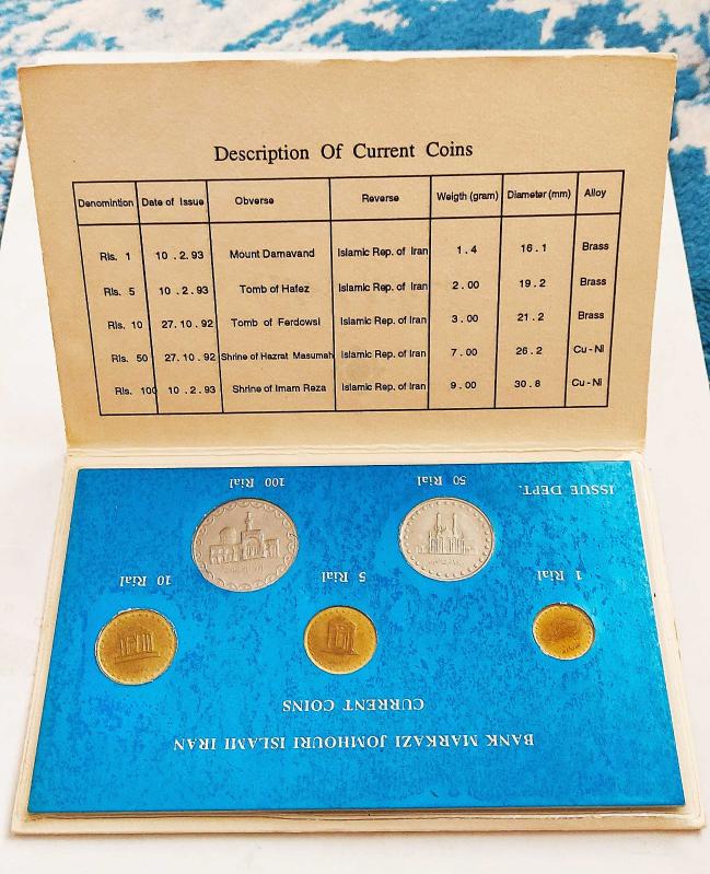 İran 1/5/10/50/100 Riyal Set..Orjinal Darphane Föyüyle Birlikte.. #1993