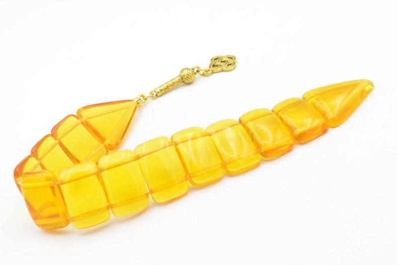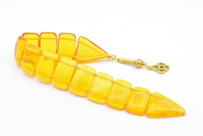 İri Taneli Şeffaf Sarı Toz Kehribar Balık Tesbih başlıklı antika/koleksiyon objesi Türkiye menşe’lidir. 2000 ve sonrası dönemine aittir.