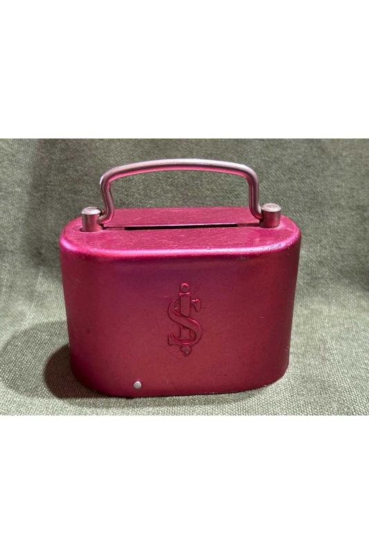 İş Bankası seri numaralı alüminyum kumbara - anahtarı yoktur başlıklı antika/koleksiyon objesinin menşei belirtilmemiştir. Objenin ait olduğu dönem bilinmeketedir.