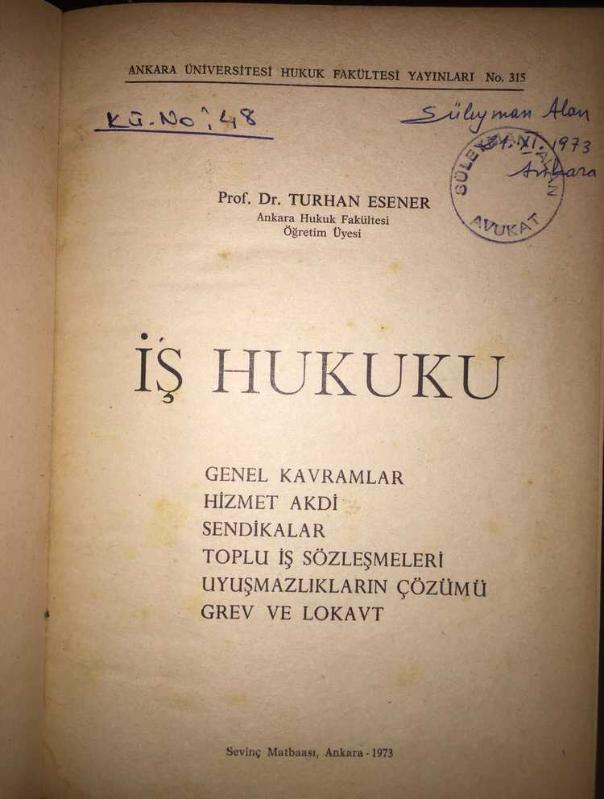 İş Hukuku, Turhan Esener tarafından kaleme alınmıştır. Kitap 1973 yılında Sevinç Matbaası tarafından [İstanbul] yayınlanmıştır. 607 sayfadır. İş Hukuku adlı eser Türkçe dilindedir.