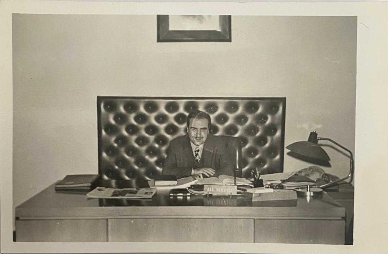 İş yerinde masa başında otururken poz veren bir erkek fotoğrafı ,ORİJİNAL SİYAH & BEYAZ, 14 x 9cm EBADINDA - 1940'LAR, 1950'LER, 1960'LAR ve 1970'LER