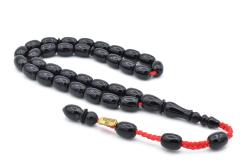 İsa Balkaya Usta İmzalı Kapsül Kesim Siyah Sıkma Kehribar Tesbih