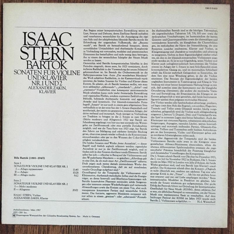 Isaac Stern - Bartók - Alexander Zakin - Sonaten Für Violine Und Klavier Nr. 1 Und 2 / Germany 1972 / LP, en son 1 yıl önce güncellenmiştir.