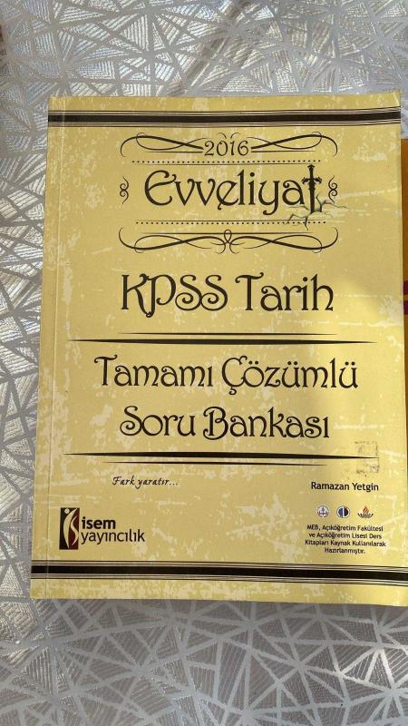 İsem Yayıncılık Evveliyat kpss Tarih Tamamı Çözümlü Soru Bankası adlı eser, Kitap > Sınav ve Ders Kitapları > Sınavlara Hazırlık kategorisinde İkinci El olarak satıştadır.