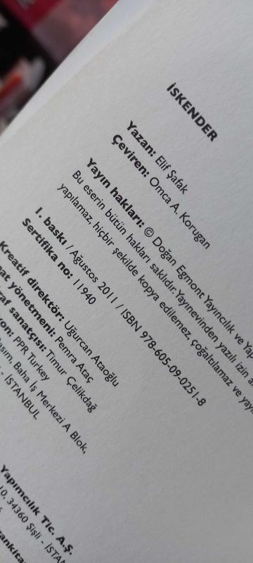 İskender, Elif Şafak tarafından kaleme alınmıştır. Kitap 2011 yılında Doğan Kitap tarafından [İstanbul] yayınlanmıştır. 443 sayfadır. İskender adlı eser Türkçe dilindedir.