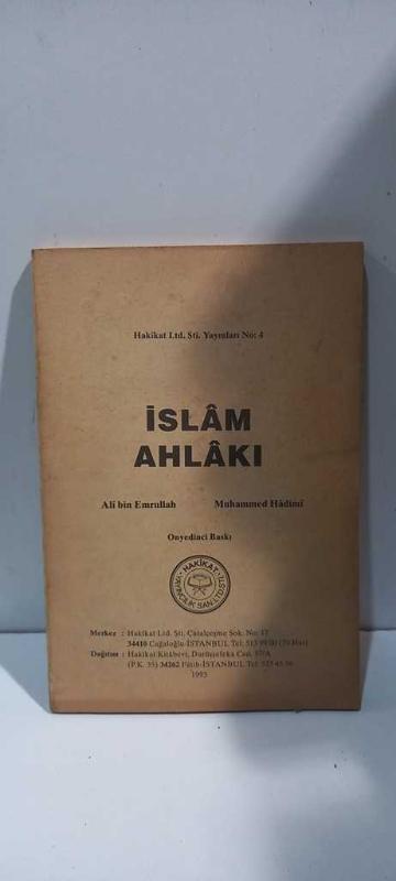 İslam Ahlakı, Ali Bin Emrullah, Muhammed Hadimi tarafından kaleme alınmıştır. Eser hüseyn hilmi ışık editörlüğünde hazırlanmıştır. Kitap 1993 yılında Hakikat Kitabevi tarafından [İstanbul] yayınlanmıştır. 592 sayfadır. İslam Ahlakı adlı eser Türkçe dilindedir.