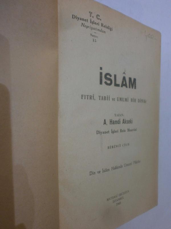 İslam Fıtri, Tabii ve Umumi Bir Dindir - Birinci Cild, A. Hamdi Akseki tarafından kaleme alınmıştır. Kitap 1943 yılında Diyanet İşleri Başkanlığı tarafından [İstanbul ] yayınlanmıştır. 656 sayfadır. İslam Fıtri, Tabii ve Umumi Bir Dindir - Birinci Cild adlı eser Türkçe dilindedir.