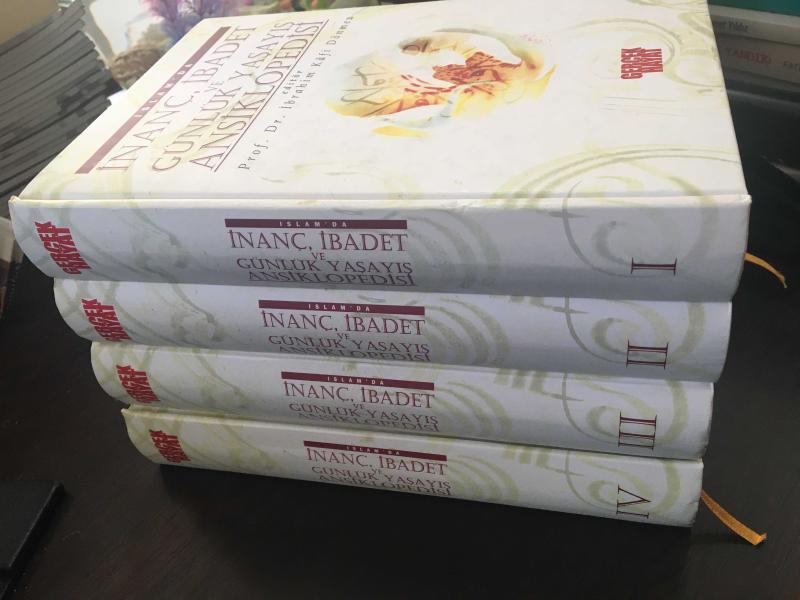 Eser İbrahim kafi Dönmez editörlüğünde hazırlanmıştır. Kitap Gerçek hayat tarafından yayınlanmıştır. İslamda inanç ibadet ve günlük yaşayış ansiklopedisi 4 cilt takım adlı eser Türkçe dilindedir.