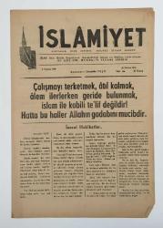 İslamiyet Gazetesi: Haftalık Dini, İçtimai, Ahlaki Gazete Baş Yazarı: Şemseddin Yeşil 4 sayfa 42 * 30 cm