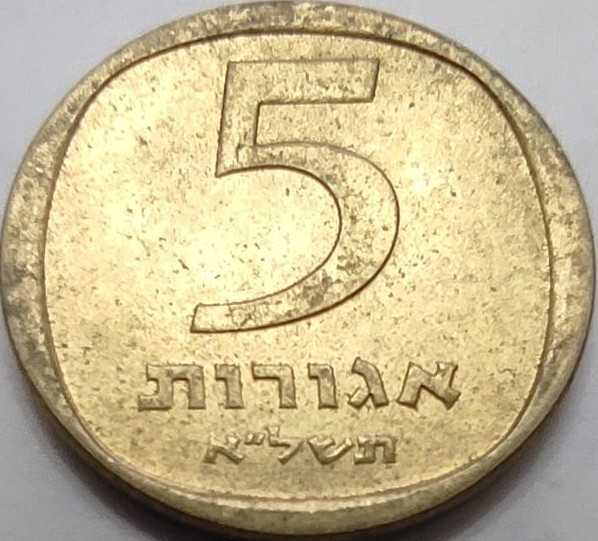 İsrail'in tarımsal bereketini ve antik köklerini simgeleyen bu 1971 (İbrani takvimine göre 5721) yılı 5 Agorot, ülkenin erken dönem nümismatik serisinin en zarif örneklerinden biridir. Paranın ön yüzünde, Antik Yahudi paralarından ilham alınarak tasarlanmış üç adet buğday başağı yer almaktadır. Arka yüzünde ise modern İsrail'in resmi arması olan yedi kollu şamdan (Menora) ve zeytin dalları kompozisyonu bulunmaktadır. Alüminyum-bronz alaşımından üretilen bu para, sıcak altın sarısı tonu ve kenarlarındaki dalgalı formuyla (scalloped edge) koleksiyonlarda görsel bir çeşitlilik sunmaktadır. 1960'lı yılların başındaki İsrail ekonomisinin gündelik bir parçası olan bu obje, hem Orta Doğu paraları biriktiren nümismatlar hem de antik tasarımların modern paralara yansımasını takip eden koleksiyonerler için vazgeçilmez bir parçadır. Kondisyonu itibariyle başak detaylarındaki keskinliği koruyan bu örnek, tarihsel ve kültürel bir anlatı taşımaktadır.