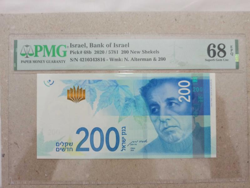 İsrail 200 shekel 2020 çil. PMG 68 sertifikalı
