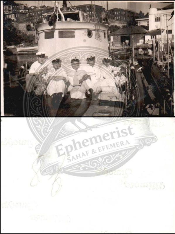 İstanbul, Askerî Liman, Fotoğraf, 1940’lar: Üniformalı denizciler, küçük bir savaş gemisinin güvertesinde grup halinde otururken, geride yalı ve iskele yapıları. başlıklı ürün, Efemera, Müzik, Sinema > Fotoğraflar > Günlük Yaşam kategorisi altında İkinci El olarak satılmaktadır.