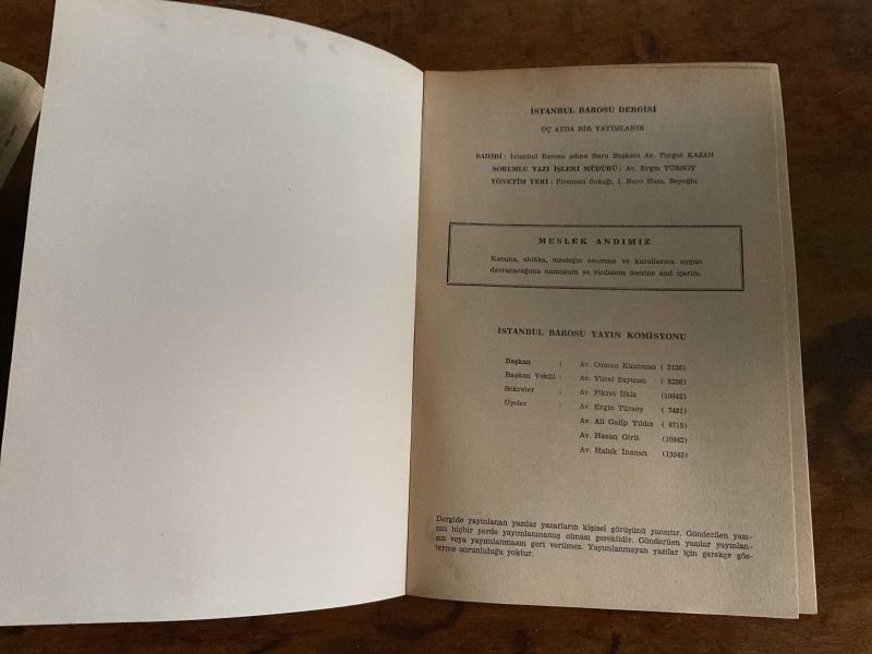 Kitap 1990 yılında Ufuk Matbaası tarafından [İstanbul] yayınlanmıştır. 230 sayfadır. İstanbul Barosu Dergisi adlı eser Türkçe dilindedir.