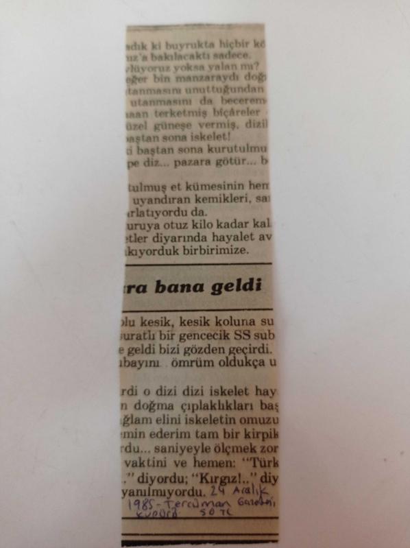 Fotoğraf Boyutu:4*14cm Sayfa Sayısı: 2 Tercüman Gazetesi Kupürü 24 Aralık 1985 Yıpranma, sararmalar, kupon kesiği ve yırtılmalar zamana bağlı olarak görülebilir