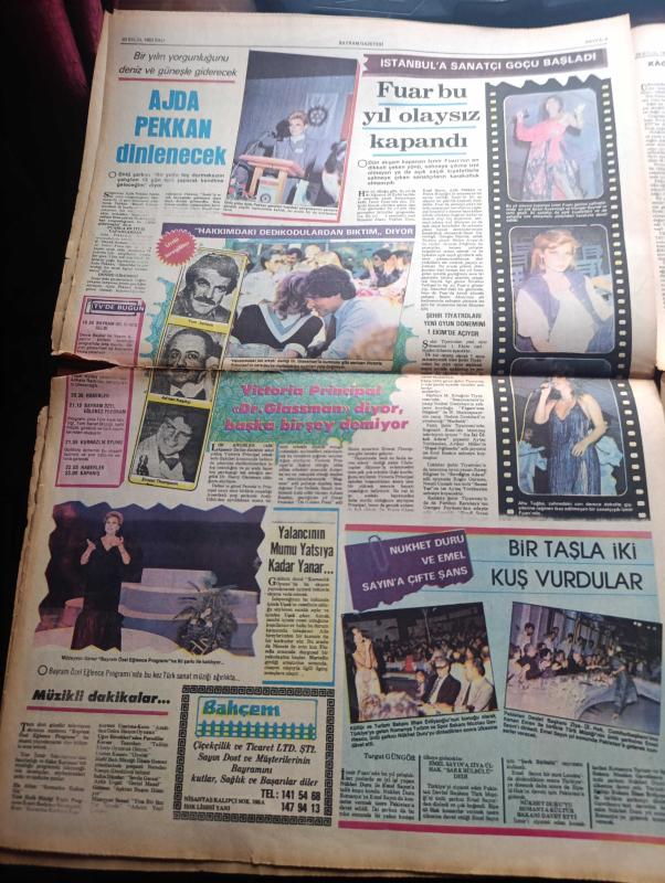 İstanbul Bayram Gazetesi - Turkish Newspaper - 20 Eylül 1983 - serbest bölge kurulacak yerler bayramdan sonra belirlenecek - güzelim Haliç yazan Tekin Erer - Kurban Bayramı tebrik mesajları - işte Ortadoğu için hazırlanan 5 ana Barış planı ve farkları - Sakız halkı Türkleri bütün yabancıların daha fazla seviyoruz - dış ülkelere 255 milyon liralık meşrubat sattık - Marmaris'te bayramda turizm patlaması gerçekleşti fotoğraf - yabancılar sünnete merak sardı - Tekel şarabı fotoğraf - İzmir fuarı Bu yıl olaysız kapandı - İzmir fuarı sahnelerinde en çok Sezer Güvenirgil ve Güngör Bayrak'ın ismi geçti Fotoğrafı - Ajda Pekkan dinlenecek fotoğraf - Müzeyyen Senar Bayram Özel eğlence programına katılıyor fotoğraf - Hülya Koçyiğit müzikal yıldızı oluyor fotoğraf - Hülya Sözer Neco Mine Soley Caddebostan Maksimde - Fenerbahçe'de stankovic bayıltıcı idmanları başlatıyor - Beşiktaş antrenörü Miliç Trabzon şokunu atlatmadan bir kere daha yıkıldık dedi - Galatasaray teknik direktörü İviç, Nezih Demirkent tarafından kaleme alınmıştır. İstanbul Bayram Gazetesi - Turkish Newspaper - 20 Eylül 1983 - serbest bölge kurulacak yerler bayramdan sonra belirlenecek - güzelim Haliç yazan Tekin Erer - Kurban Bayramı tebrik mesajları - işte Ortadoğu için hazırlanan 5 ana Barış planı ve farkları - Sakız halkı Türkleri bütün yabancıların daha fazla seviyoruz - dış ülkelere 255 milyon liralık meşrubat sattık - Marmaris'te bayramda turizm patlaması gerçekleşti fotoğraf - yabancılar sünnete merak sardı - Tekel şarabı fotoğraf - İzmir fuarı Bu yıl olaysız kapandı - İzmir fuarı sahnelerinde en çok Sezer Güvenirgil ve Güngör Bayrak'ın ismi geçti Fotoğrafı - Ajda Pekkan dinlenecek fotoğraf - Müzeyyen Senar Bayram Özel eğlence programına katılıyor fotoğraf - Hülya Koçyiğit müzikal yıldızı oluyor fotoğraf - Hülya Sözer Neco Mine Soley Caddebostan Maksimde - Fenerbahçe'de stankovic bayıltıcı idmanları başlatıyor - Beşiktaş antrenörü Miliç Trabzon şokunu atlatmadan bir kere daha yıkıldık dedi - Galatasaray teknik direktörü İviç adlı eser Türkçe dilindedir.