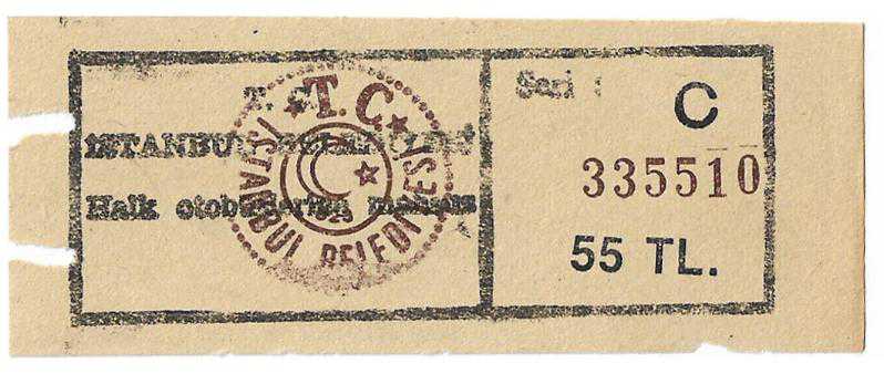 İstanbul Belediyesi Halk Otobüs Bileti, ederi: 55 TL, Seri No: C 335510