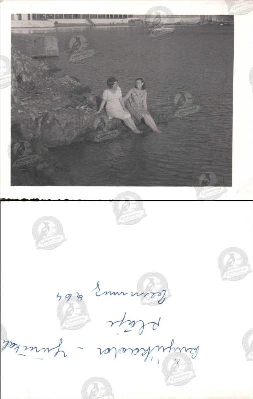 İstanbul, Büyükada, Deniz Kenarı, Fotoğraf, 1950’ler: Kayalık kıyıda, ayakları suda iki kadının oturduğu sakin bir sahil anı, arka planda iskele yapıları. başlıklı ürün, Efemera, Müzik, Sinema > Fotoğraflar > Diğer kategorisi altında İkinci El olarak satılmaktadır.