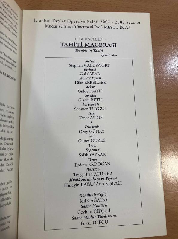 İstanbul Devlet Opera ve Balesi 2002 Tahiti Macerası L. Bernstein Synopsis Broşür
