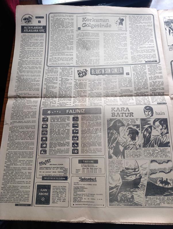 İstanbul Gazetesi Sayfa Boyutu : 42*58 cm Sayfa Sayısı: 6 Yıpranma, sararmalar, kupon kesiği ve yırtılmalar zamana bağlı olarak görülebilir Not: Tam takım gazetedir