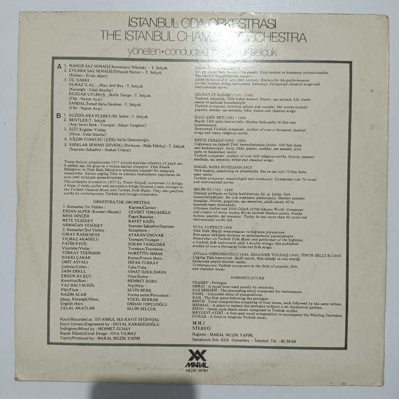 şarkıcı/grup- İstanbul Oda Orkestrası şef Timur SELÇUK şarkılar - tür - baskı/press -1979 plak -8/10 kapak -7,5+/10 MPN no -MM-2 bilgi - bilgi -