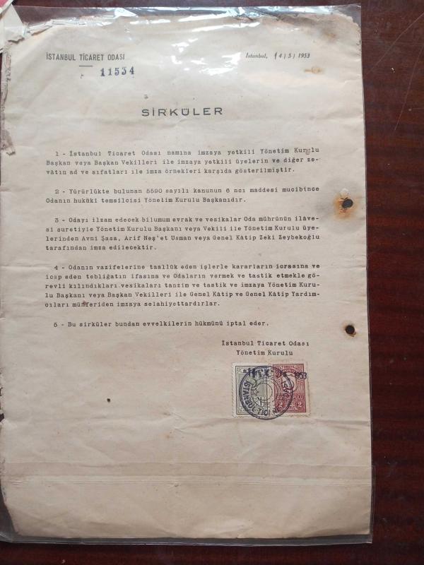 İstanbul Ticaret Odası antentli 1953 tarihli imza yetkili yönetim kurulu adlı imza sirküleri belgesi çok nadir, en son 1 yıl önce güncellenmiştir.