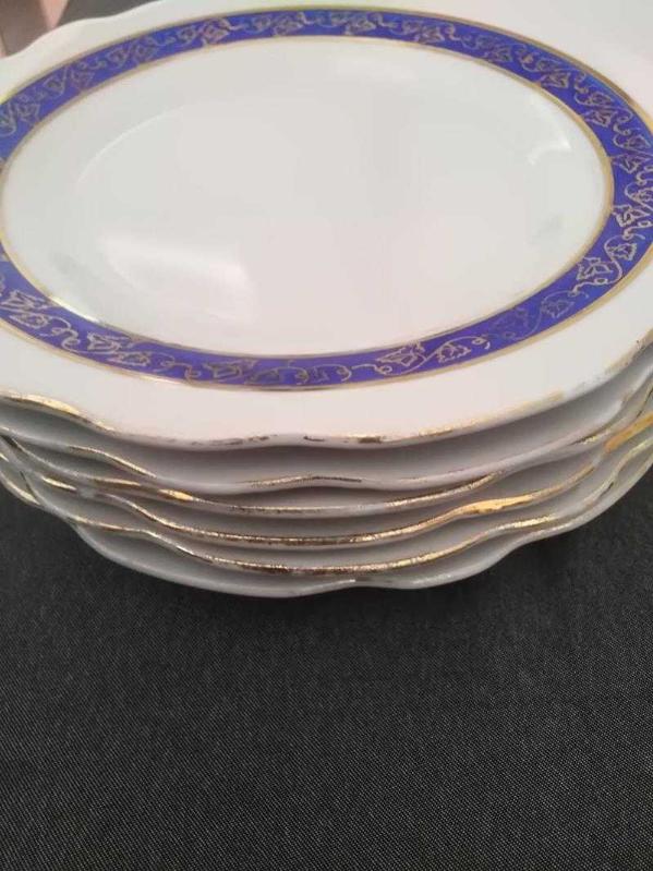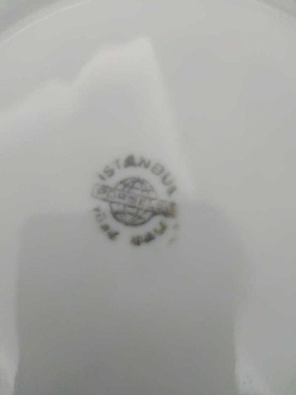 İstanbul porselene ait bir servis tabağı 6 pasta tabağından oluşan 70 yıllık bir tabak takımı hiç bir atığı kırığı veya çıtı yoktur yaşına bağlı altın vermiyelerinde hafif silinmeler mevcuttur. resimlerde görülmektedir.
