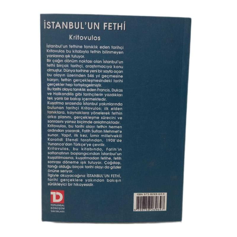 İstanbul'un Fethi, Kritovulos tarafından kaleme alınmıştır. Kitap 1999 yılında toplumsal dönüşüm yayınları tarafından [İstanbul] yayınlanmıştır. Satışta olan kitap, yayınevinin 1. baskısıdır. Bu baskının çevirisi Karolidi tarafından yapılmıştır. 251 sayfadır. Sayfa bilgisi 1.hamur olarak belirtilmiştir. İstanbul'un Fethi adlı eser Türkçe dilindedir.