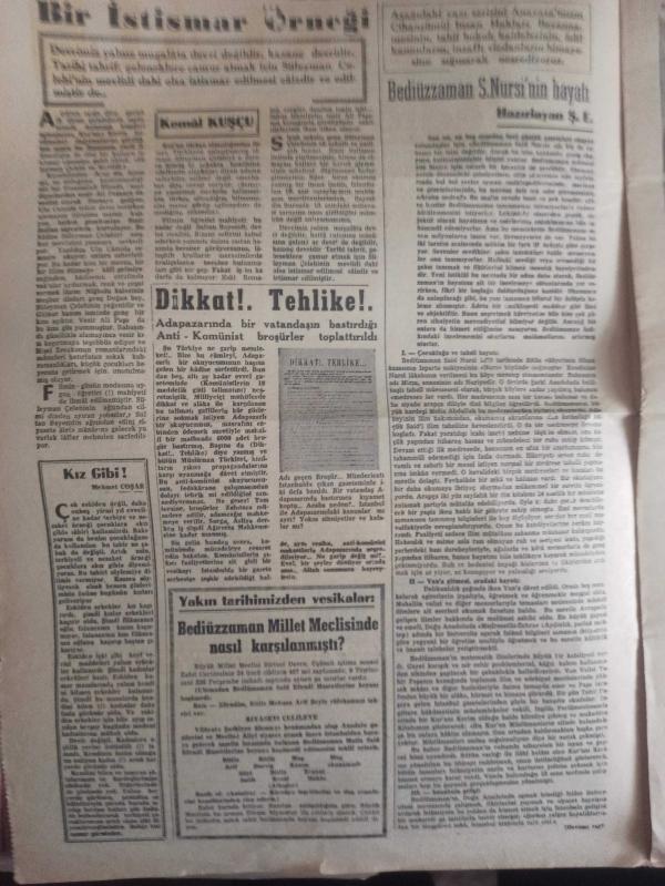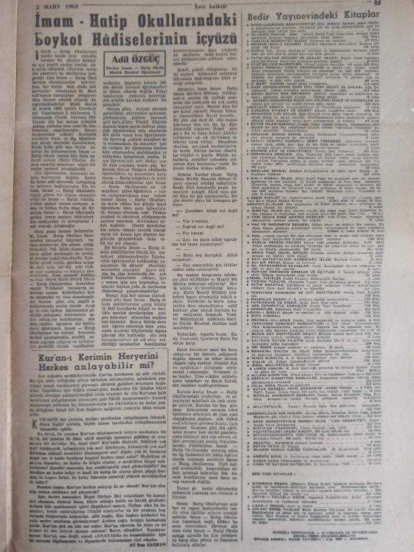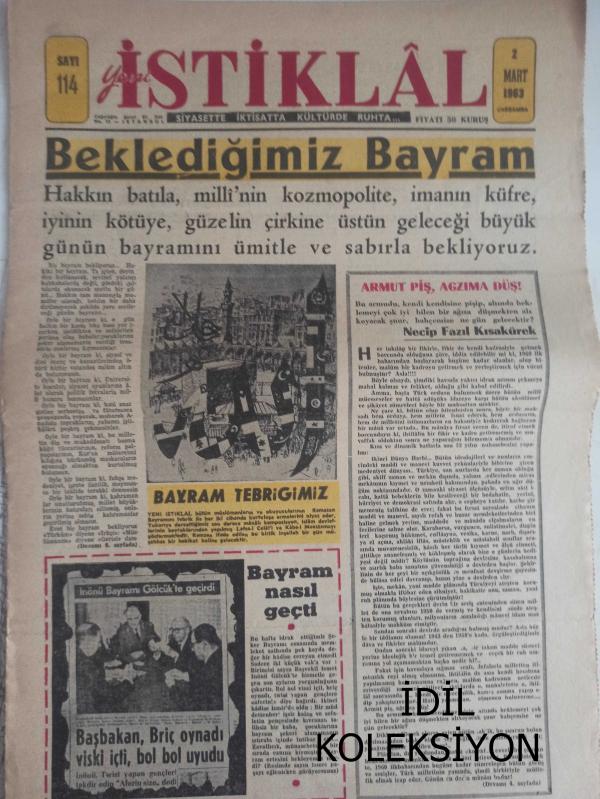 İstiklal Haftalık Siyasi Tarafsız Gazete - 2 Mart 1963 - Sayı:114 - Beklediğimiz Bayram - Bayram Nasıl Geçti - Bir İstismar Örneği - Kız Gibi - Mehmet Coşar - Bedüzzaman S. Nursi'nin Hayatı - Müdafaa, Karar Sepha, Son Söz - İstiklal Mahkemesi Mahkumlarından Birkaçı - Dava ve Lider - Kubilay İmer - Hadiseler, Bakışlar, Akisler ve Tefsirler - Mayın Tarlası - Erzurum'da Domuz Eti Yemek Mubahmış! - Rusya'da Komünistler Nasıl İktidara Geçtiler - İmam Hatip Okullarındaki Boykot Hadiselerinin İç Yüzü - Adil Özgüç - Bedir Yayınevindeki Kitaplar - Hürriyetsiz Diyanet Olamaz! - İmanlıların Komünistlere Karşı Zaferi - Yusuf Demirdağ - Beklediğimiz Bayram fotoğraf ve haberi - Tam Takım Gazete Yıpranma, sararmalar, kupon kesiği ve yırtılmalar zamana bağlı olarak görülebilir