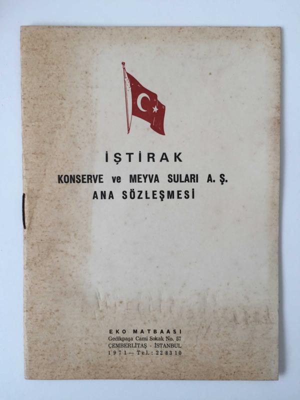 Kitap 1971 yılında Eko Matbaası tarafından [İstanbul] yayınlanmıştır. 15 sayfadır. İştirak Konserve ve Meyva Suları A.Ş. Ana Sözleşmesi adlı eser Türkçe dilindedir.
