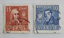 İsveç, Tarihi Figürler Serisi'nden 2 Adet, Jöns Jacob Berzelius ve Carl von Linné. Damgalı 1939.